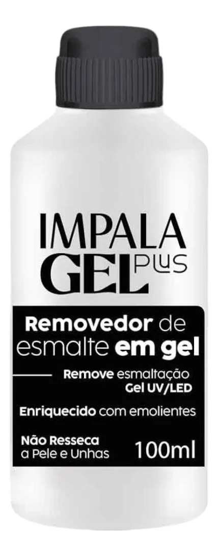 O Removedor de Esmalte em Gel Impala Gel Plus 100ml é uma solução para remover esmalte em gel com cura UV/LED, desenvolvida para ser prática e segura. Sua fórmula com emolientes remove o esmalte sem agredir ou ressecar unhas e pele. Ele elimina a necessidade de lixas manuais ou motorizadas para a remoção completa, deixando as unhas limpas e prontas para nova aplicação.