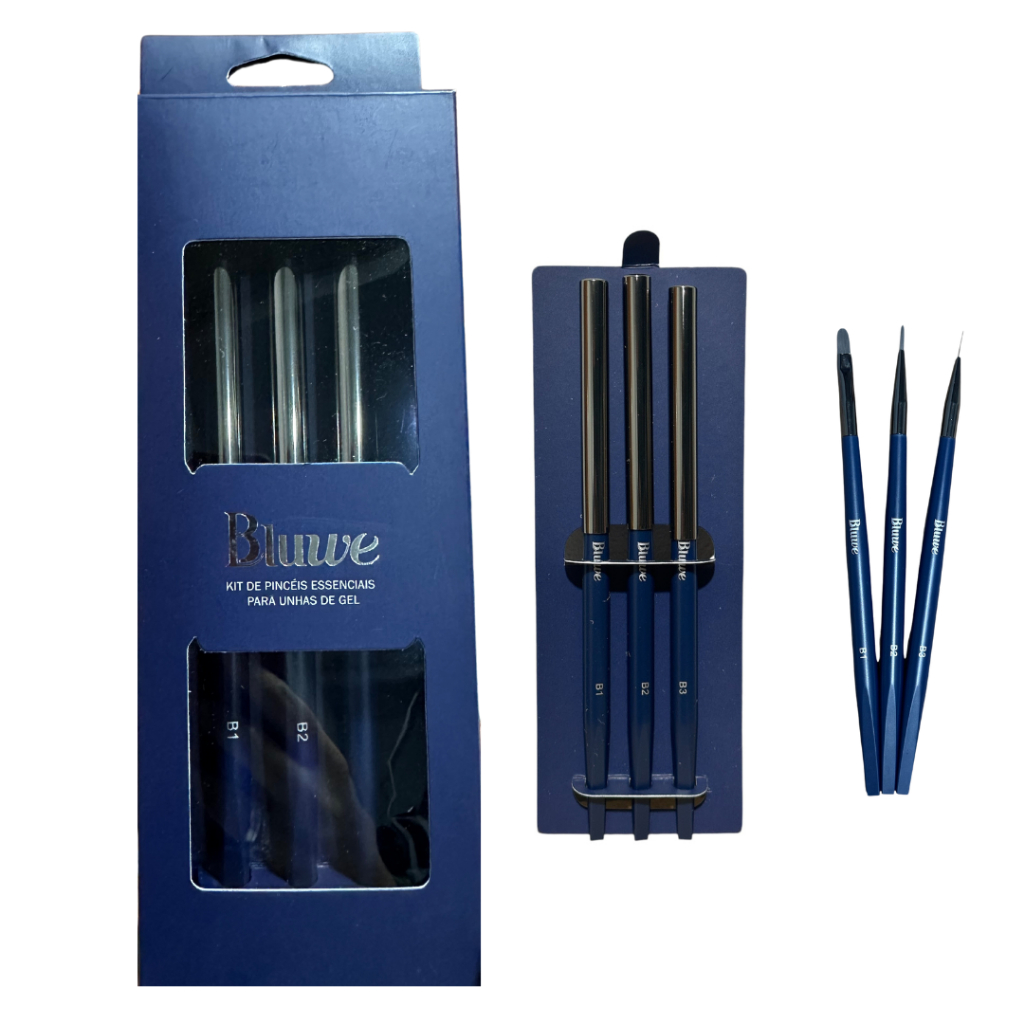 O kit de pincéis Bluwe para unhas em gel serve para aplicar, nivelar e contornar produtos de gel, garantindo precisão e um acabamento profissional em diversas etapas do alongamento, como aplicação do gel capa base, construção do ponto de tensão e nail art. Cada pincel do kit (geralmente B1, B2 e B3) tem uma função específica para otimizar o tempo e o resultado final.